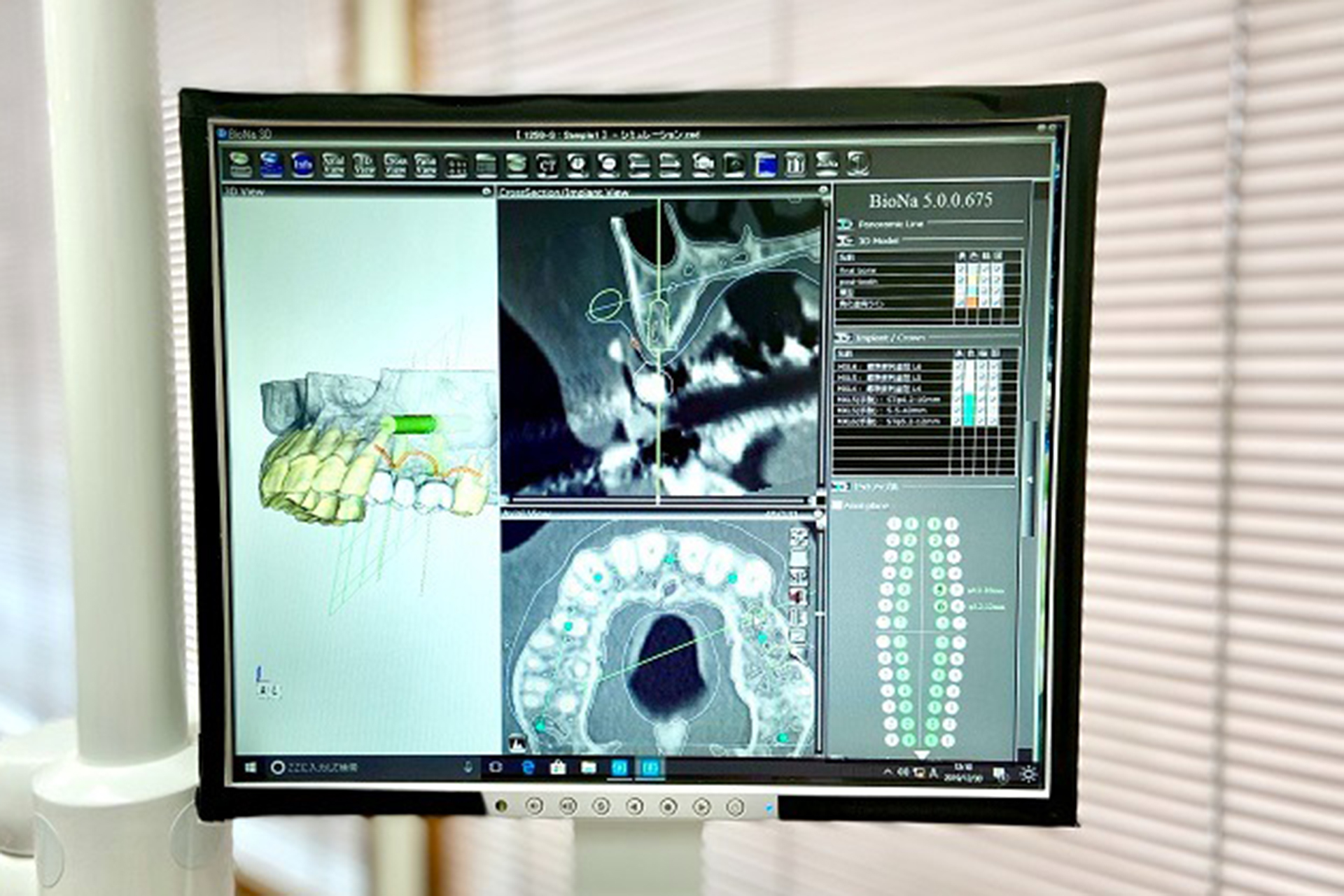 当院では、CT撮影してシミュレーションを行い、サージカルプレートを使用して治療計画を患者様と密に行い、安全なインプラント治療を提供しております。