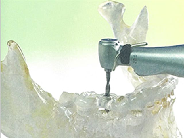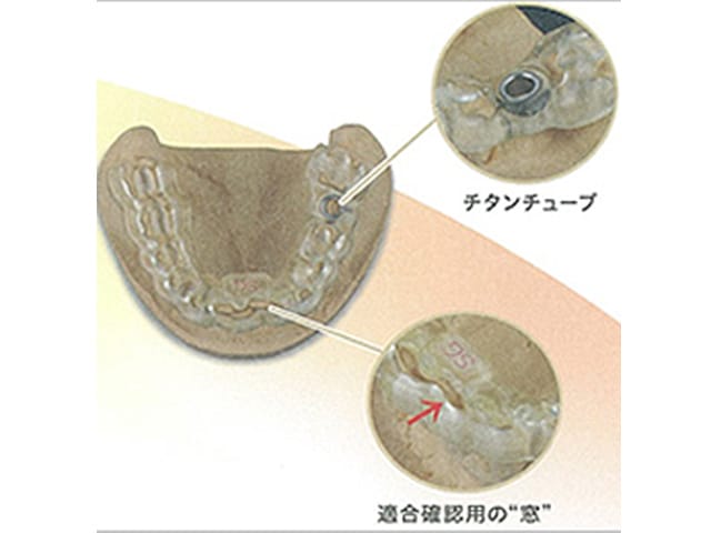 BioNaのシミュレーション結果を口腔内に再現するためのツール、BoneNaviサージカルガイド。石膏模型の精密合成により、良好な歯牙適合精度を誇ります。